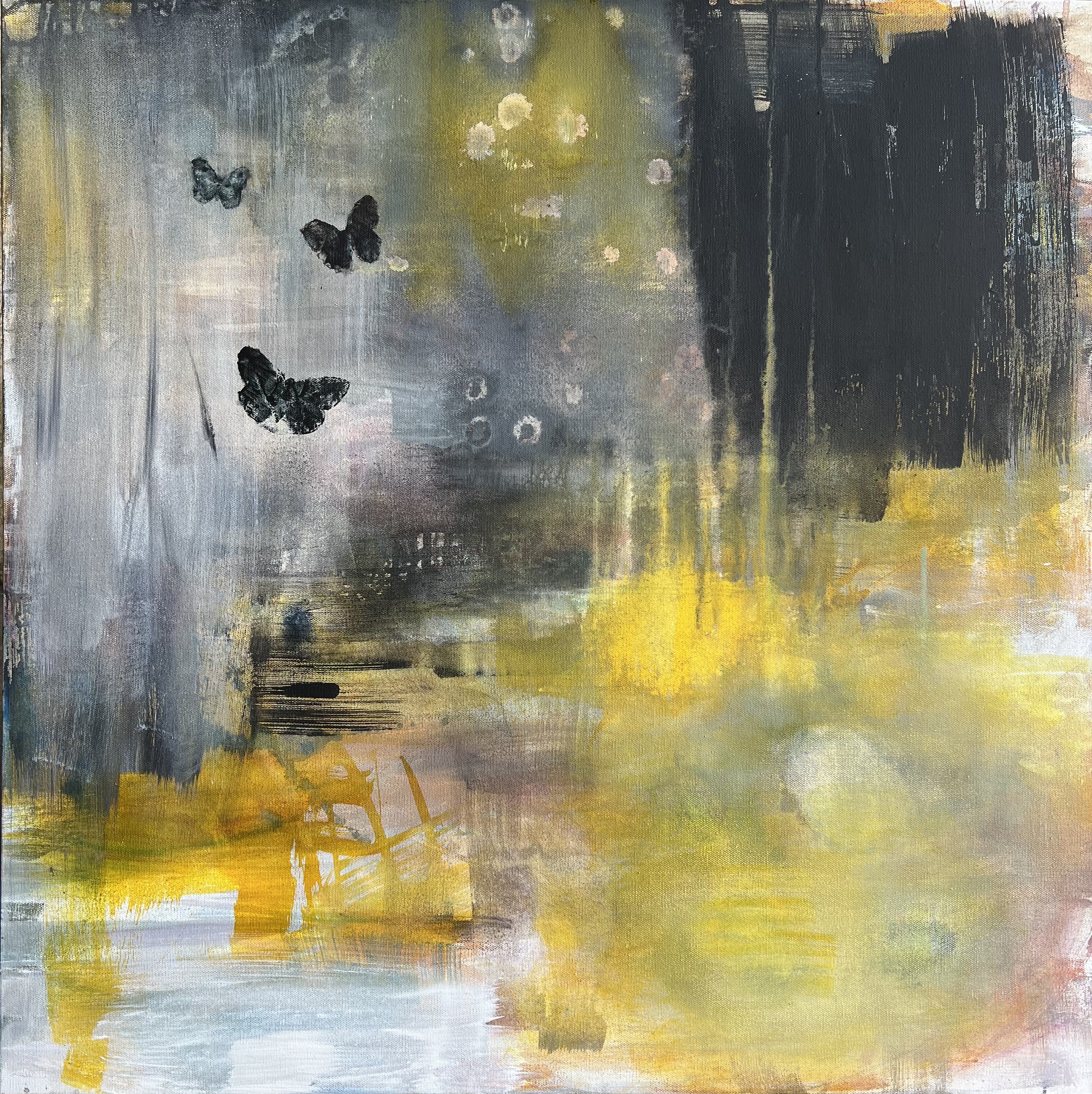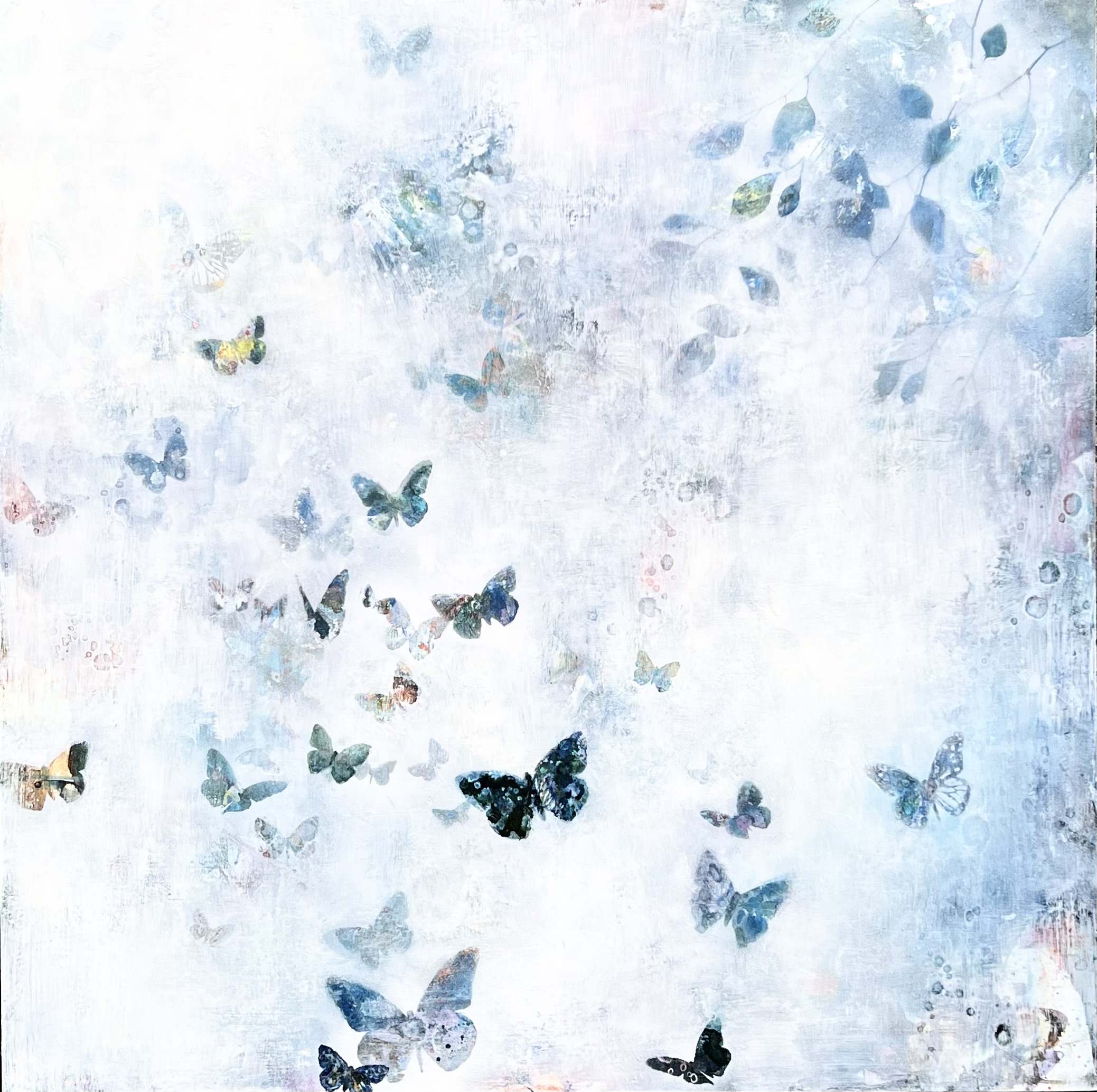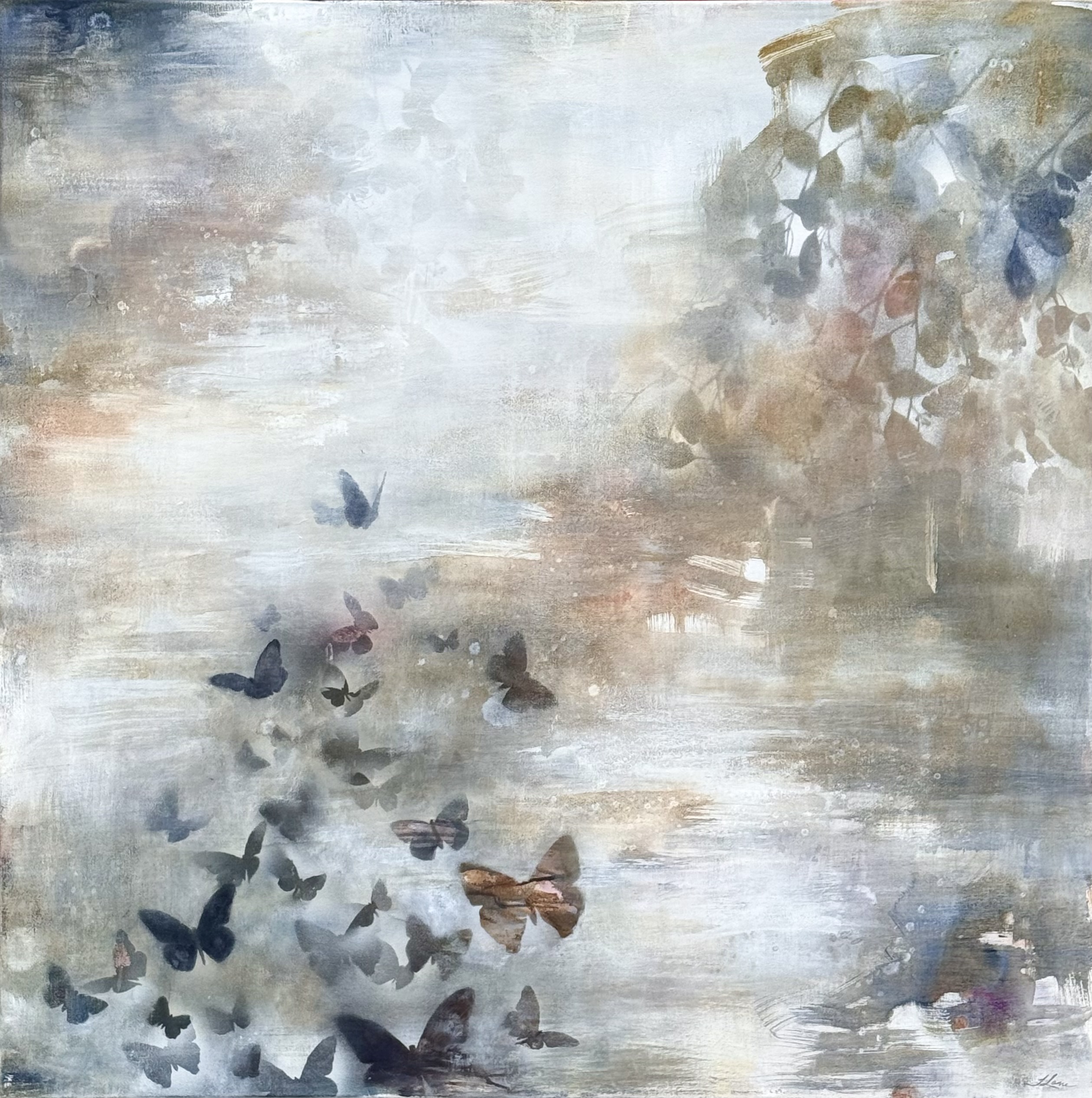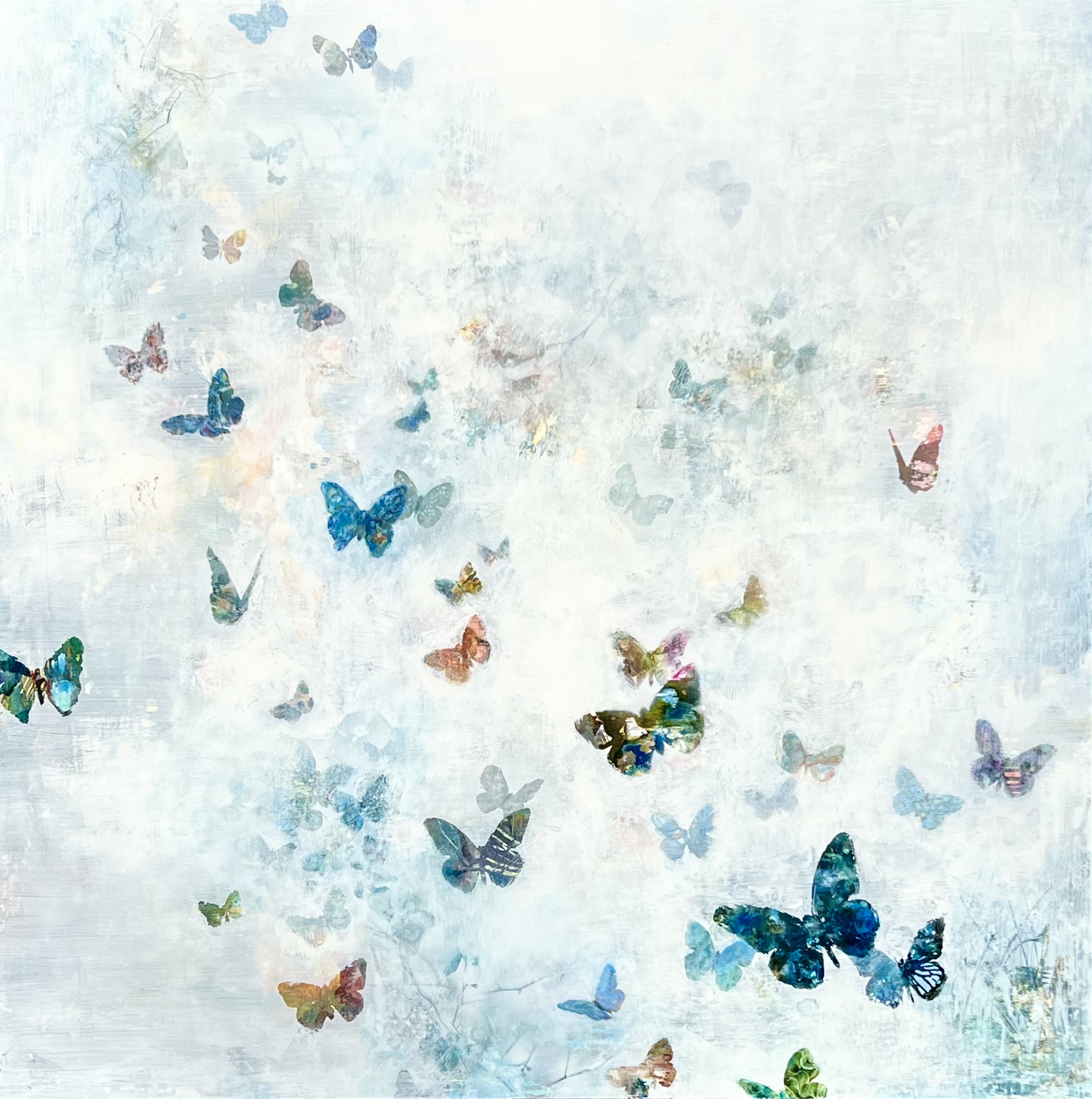 - Flutter By II, 40 x 40, acrylic on canvas, contemporary painting, butterfly, Tracey Lane, Atlanta, Georgia