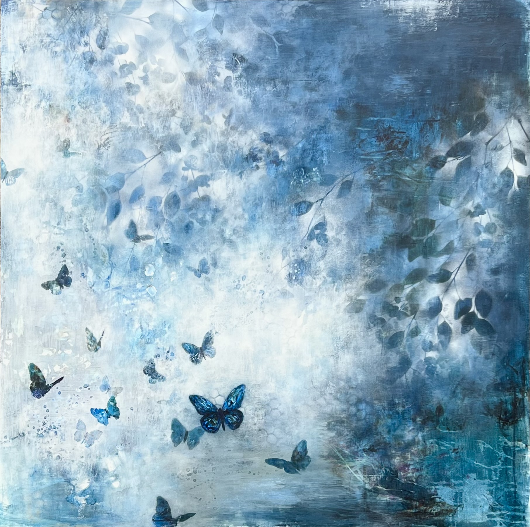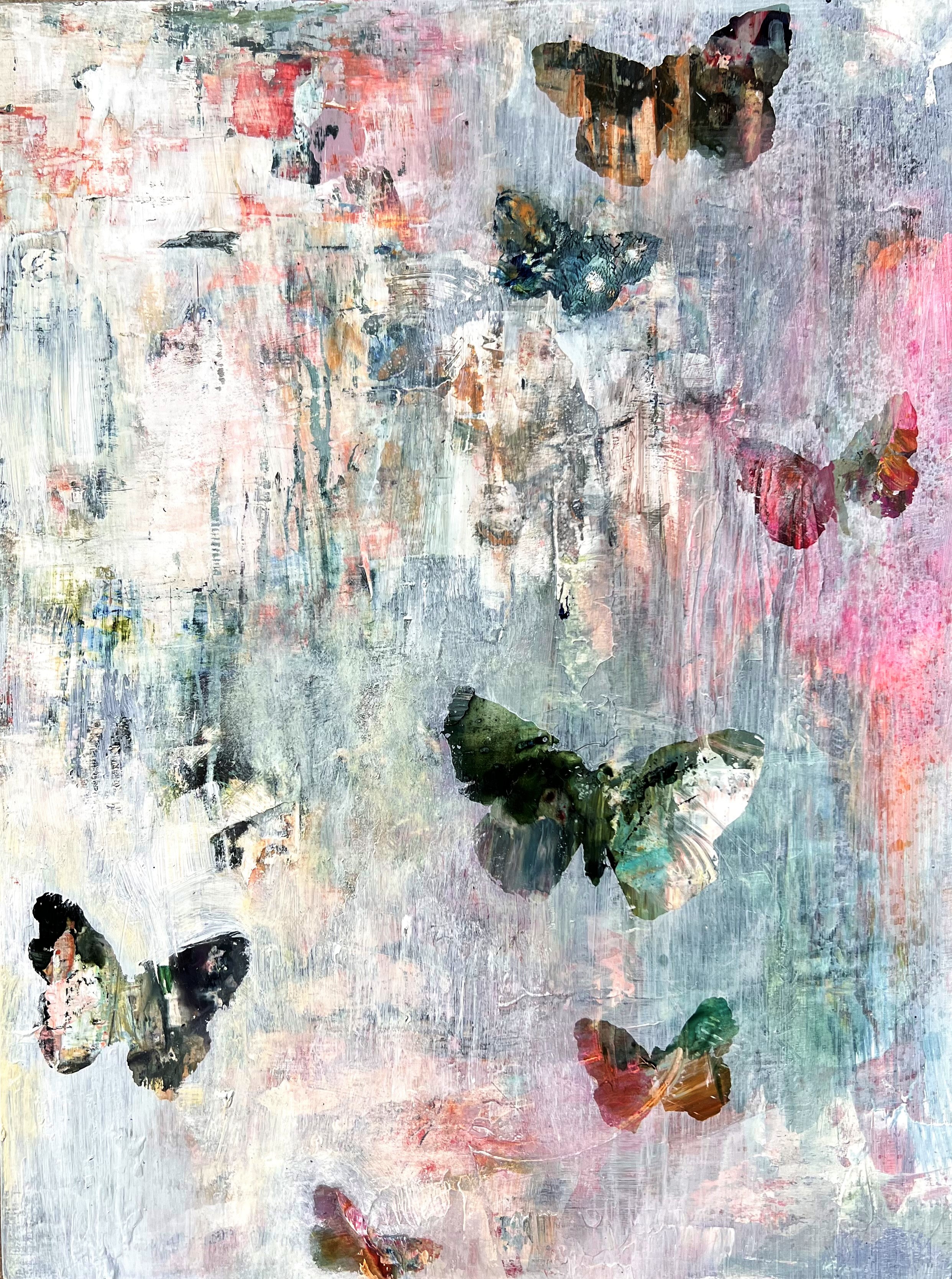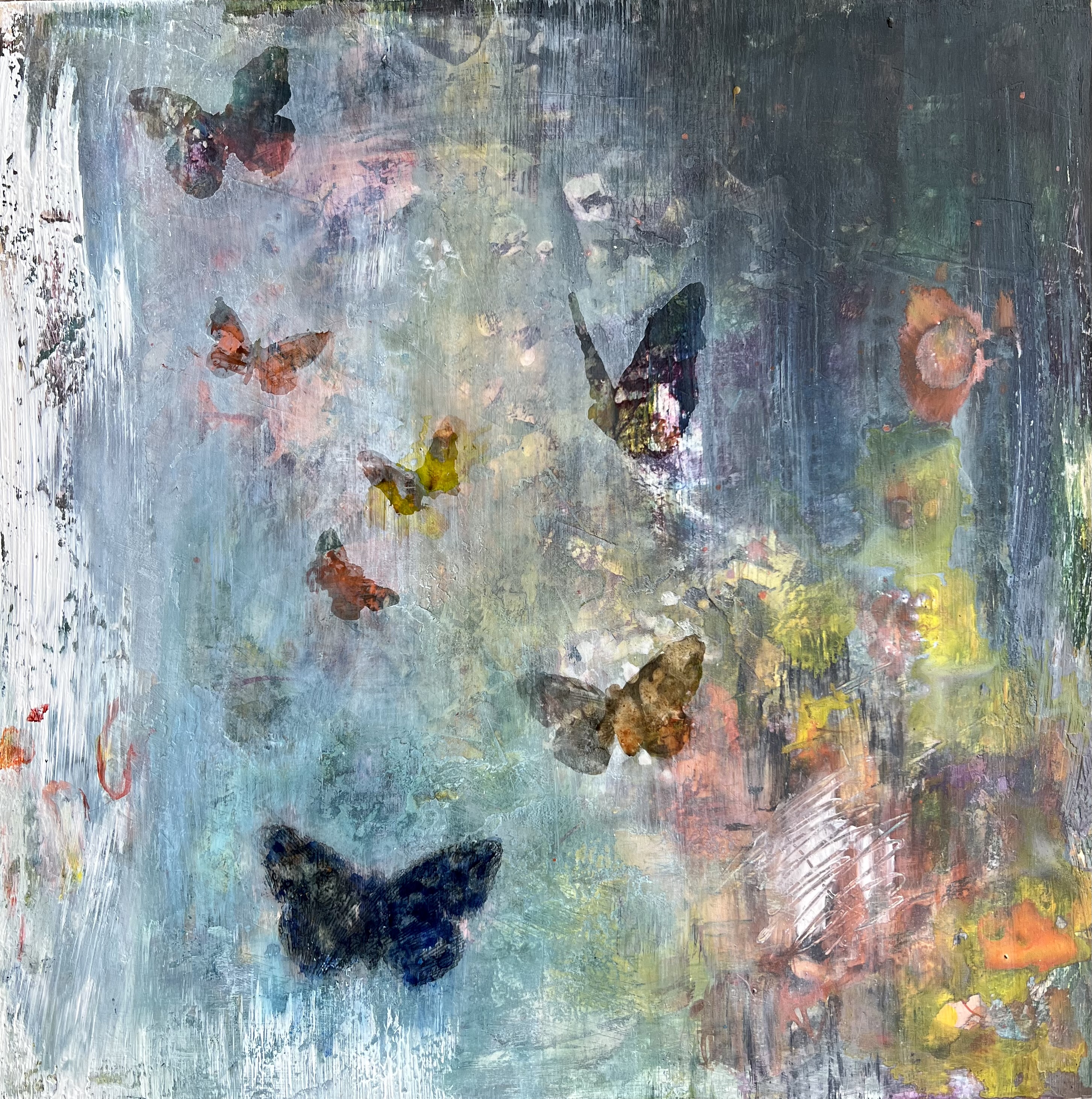 - Atmospheric original contemporary acrylic painting of butterflies and butterfly by Tracey Lane Atlanta artist