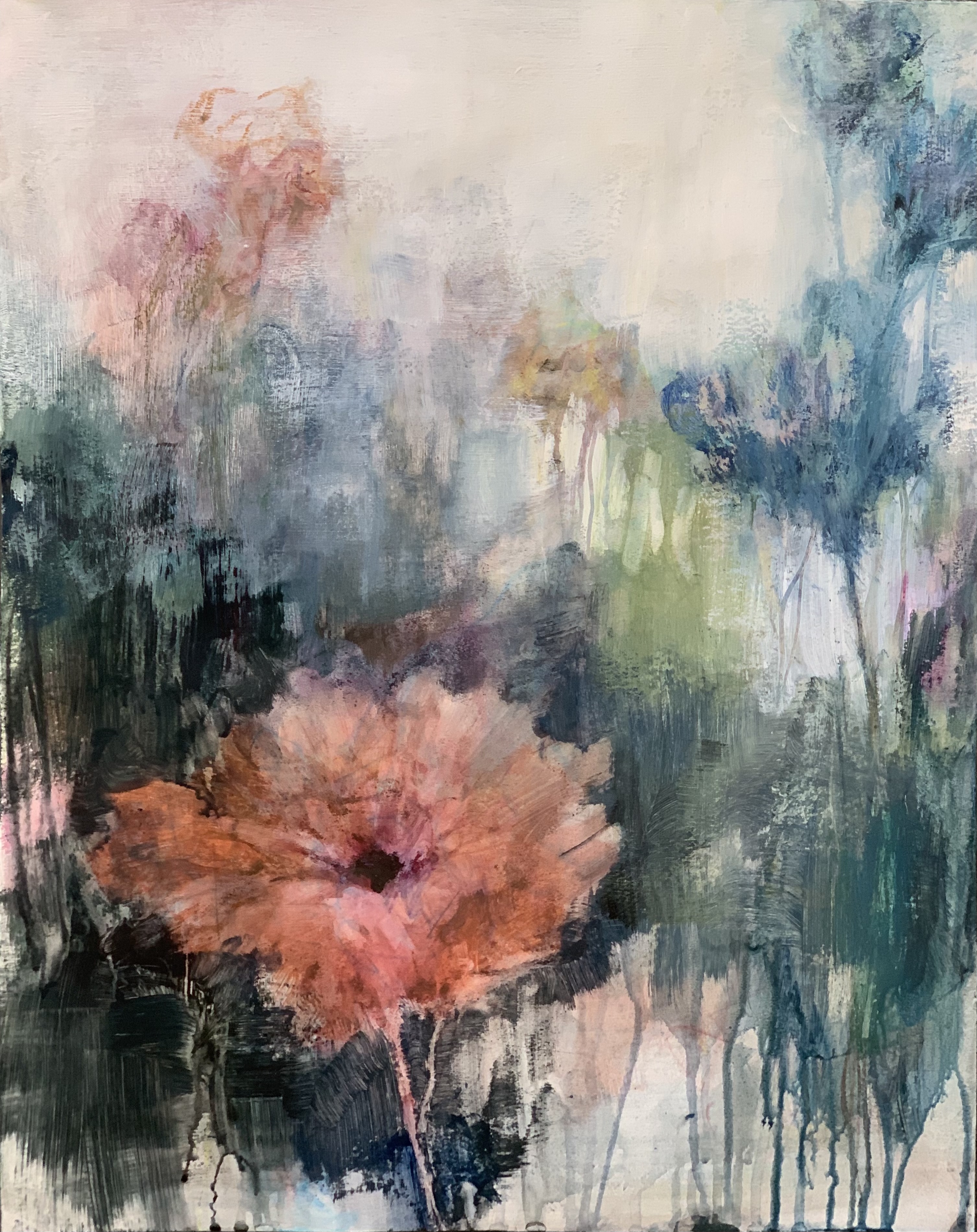 - Atmospheric original contemporary acrylic painting of flower by Tracey Lane Atlanta artist