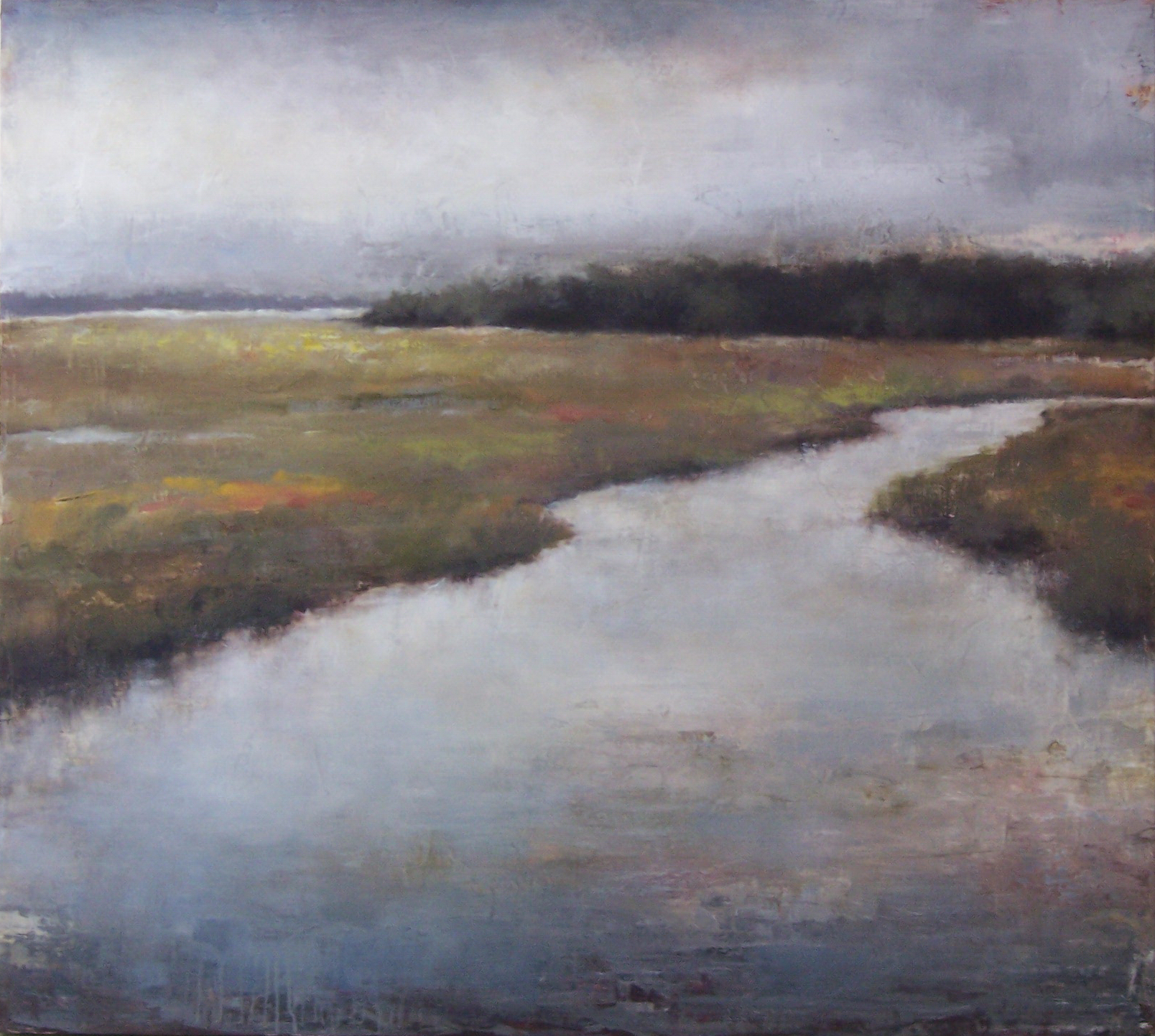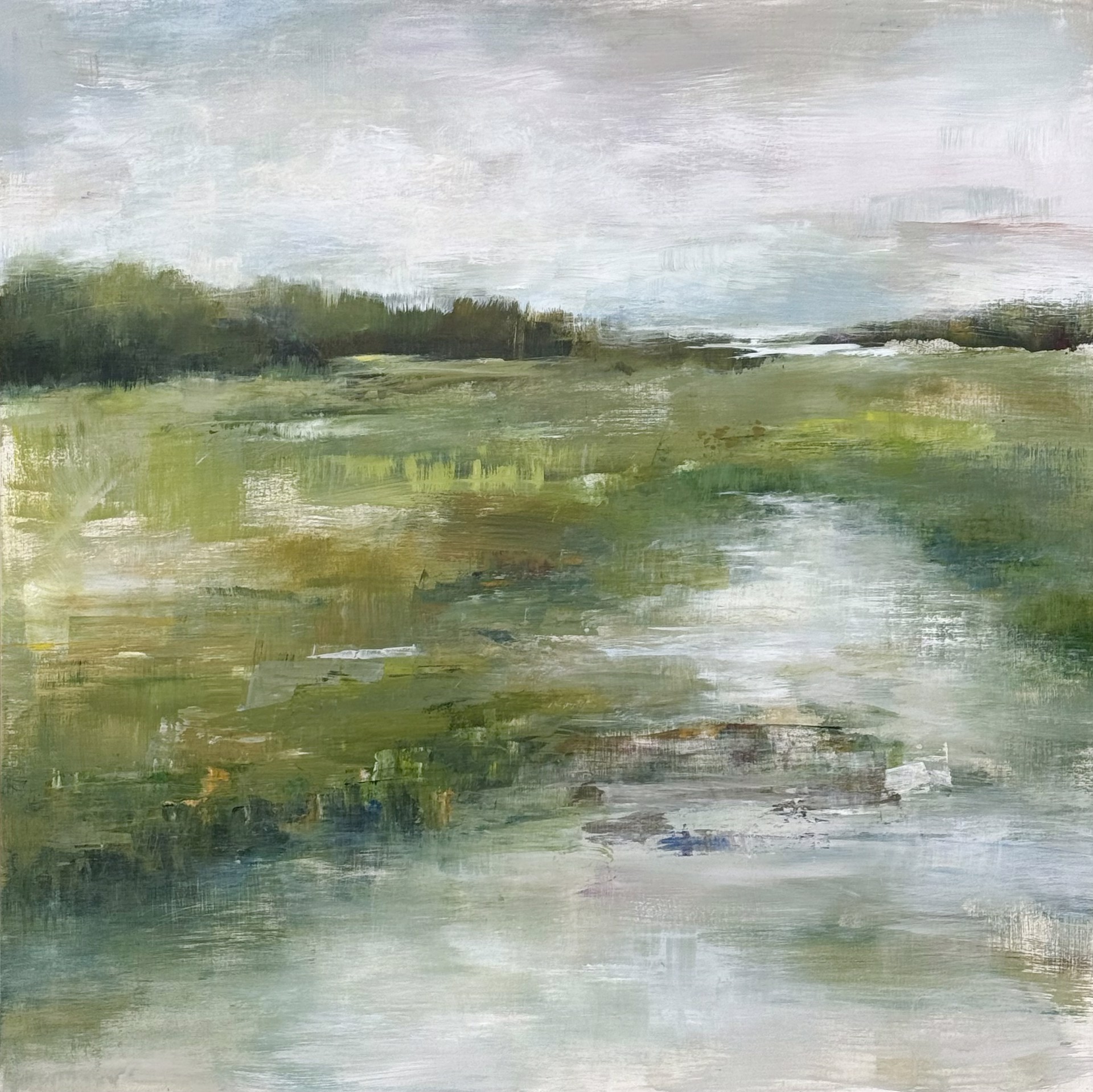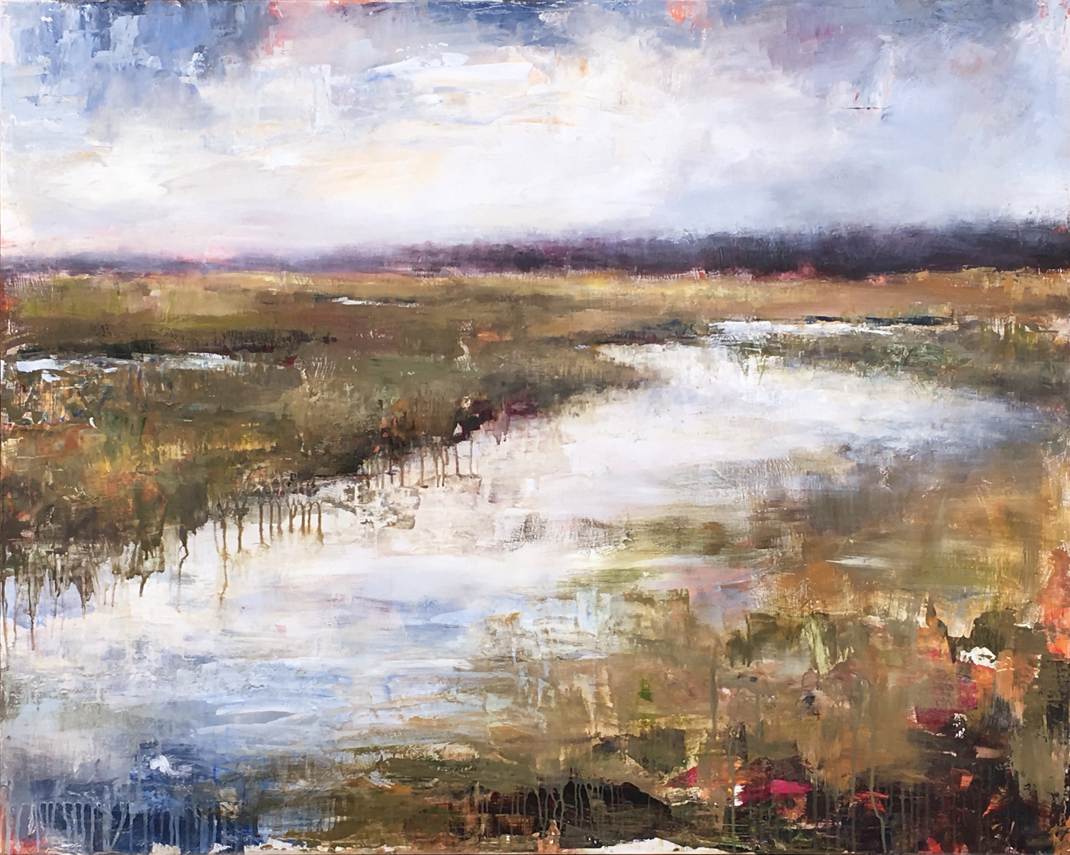 - Atmospheric southern low country landscape painting with expansive horizon, wetlands, and soft ambient light by Tracey Lane Atlanta artist