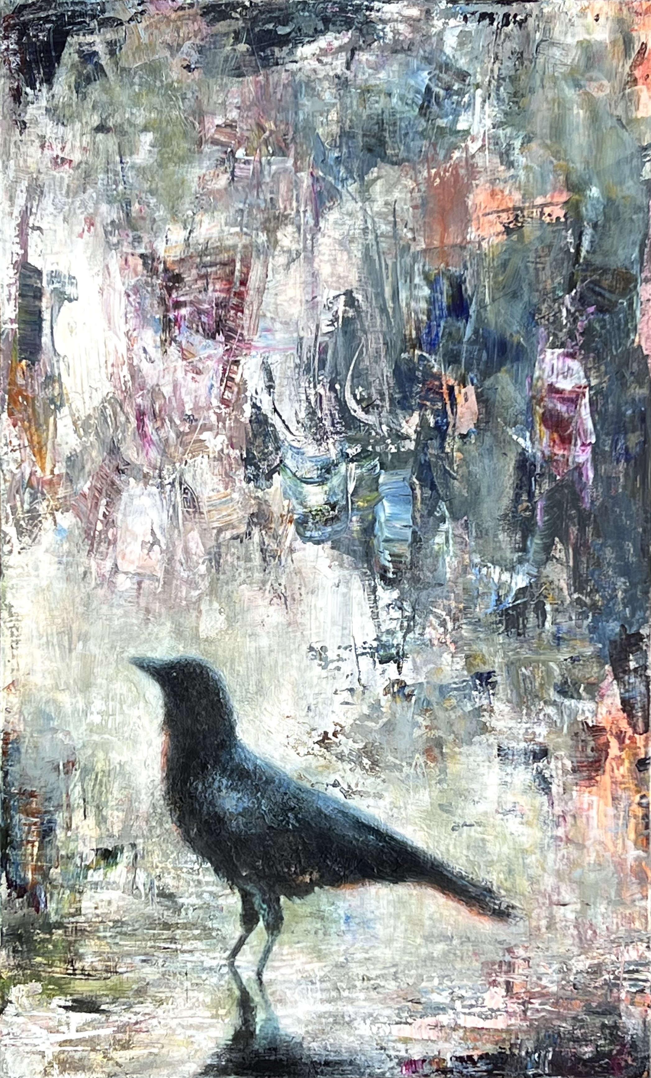- Atmospheric original contemporary acrylic painting of a bird by Tracey Lane Atlanta artist