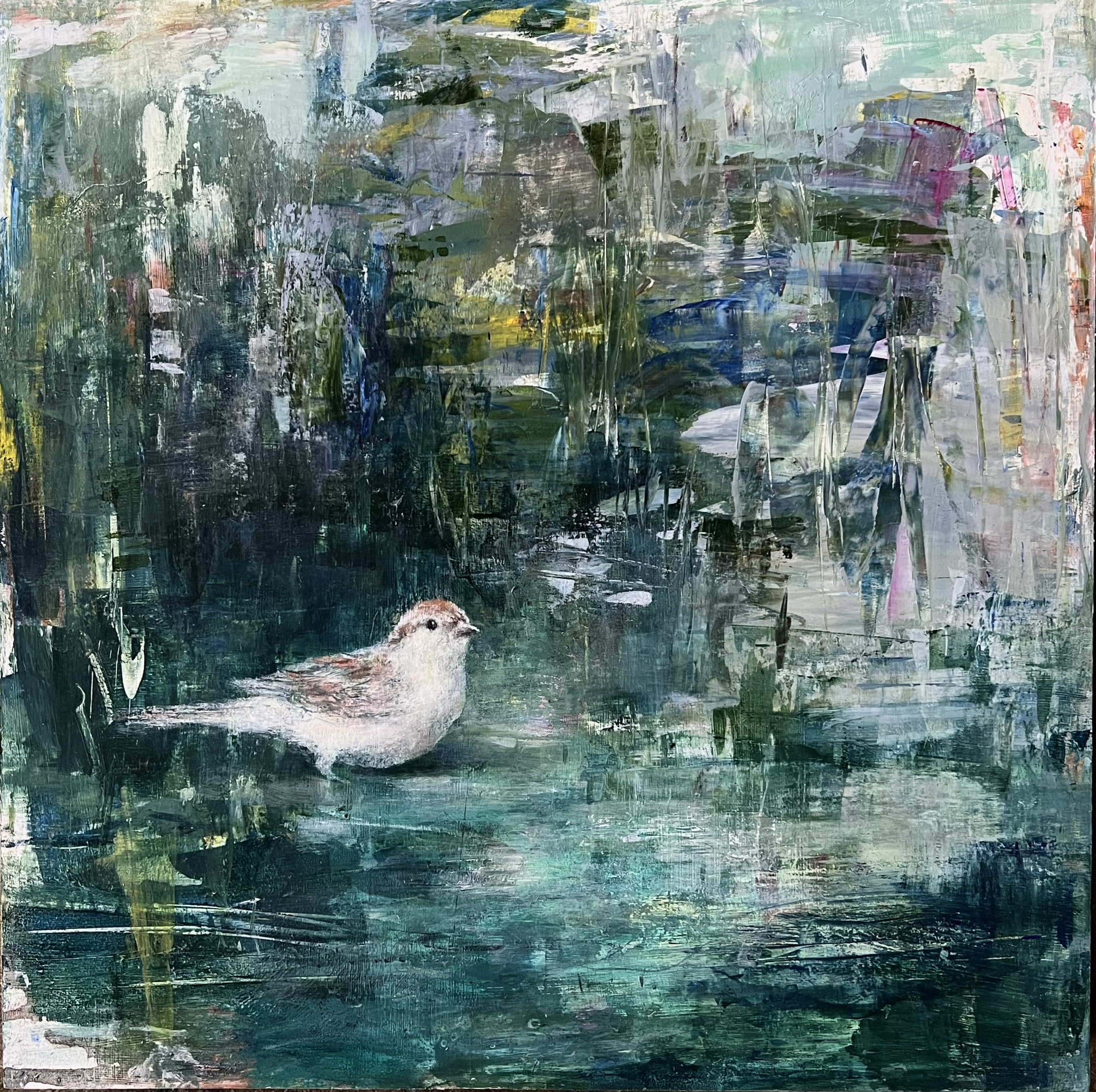 - Atmospheric original contemporary acrylic painting of bird by Tracey Lane Atlanta artist
